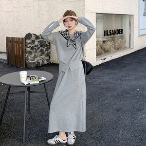 韩系chic休闲时尚套装女2025秋季新款慵懒风宽松卫衣半身裙两件套