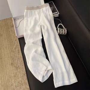 欧货高端简约时尚气质白色阔腿裤2025年夏休闲高端极简慵懒直筒裤
