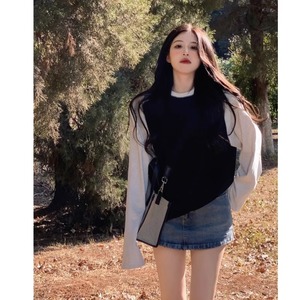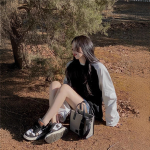 百搭美式复古撞色打底衫女时尚洋气内搭宽松2023秋季中长款上衣潮