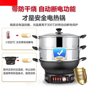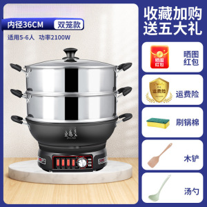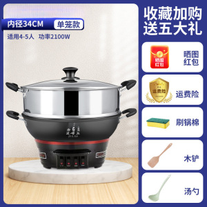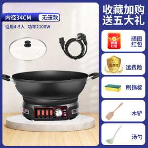 电炒锅铸铁无涂层不粘锅家用多功能炒菜蒸煮一体式电热蒸锅电火锅