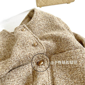 塞纳卡其色花呢外套女2025秋冬名媛小香风设计感高级感气质外套