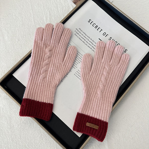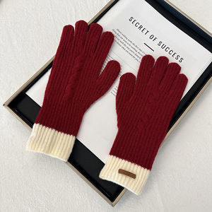 日韩系麻花含羊毛手套学院风针织拼色露指触屏骑车保暖分指手套女
