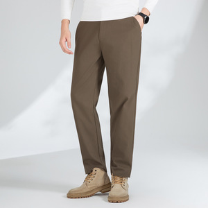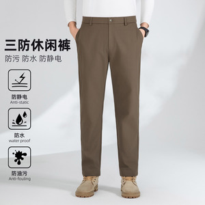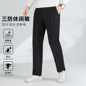 男式休闲裤2025春秋半松紧抽绳三防裤青年商务舒适直筒微弹长裤潮