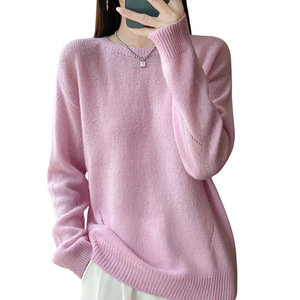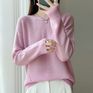 法式无缝一体丝羊毛针织衫女宽松休闲毛衣新款秋冬女装打底上衣