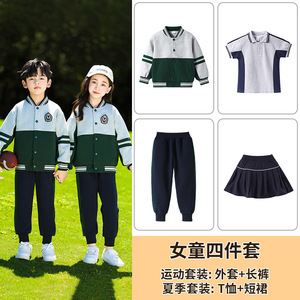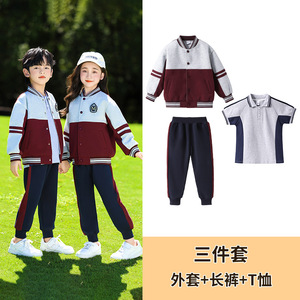 幼儿园园服春秋款小学生校服棒球服秋季套装儿童绿色班服三件套