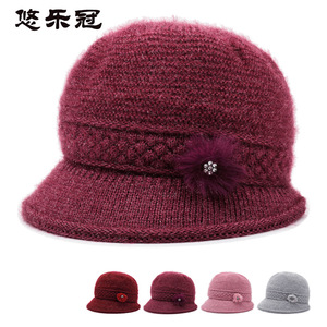 妈妈针织帽加绒护耳帽防寒老年人帽子女冬季加厚老太太保暖毛线帽