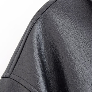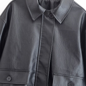 PB&ZA女装2025年秋季新款 欧美风酷感黑色翻领皮夹克外套4391773