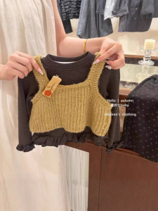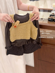 韩版女童套装2025秋季新款针织马甲儿童洋气打底衫裤子韩范三件套