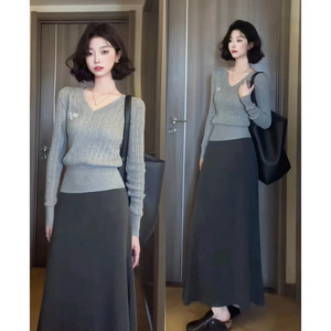 大方得体小套装早秋薄款穿搭灰色半身裙女感上衣韩系一整套秋