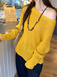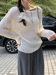 韩系坑条微透防晒显瘦针织衫女秋季慵懒宽松罩衫圆领长袖T恤上衣