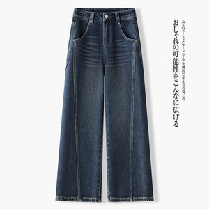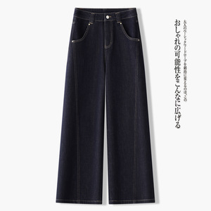 25秋季新款时尚直筒牛仔裤女宽松显瘦遮跨窄版高腰显高垂感阔腿裤