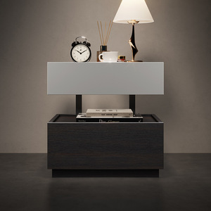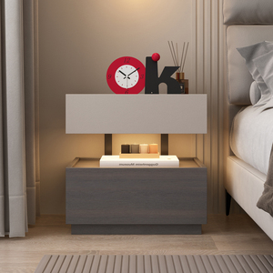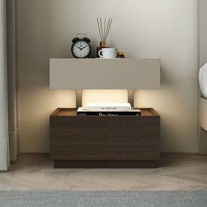 意式极简床头柜现代创意悬浮实木床边柜卧室轻奢高级感收纳储物柜