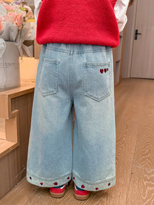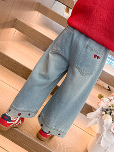 秋季新款儿童刺绣爱心牛仔裤2025年韩版女童校园直筒裤童装代发潮