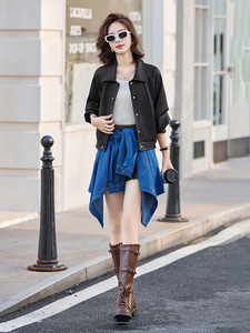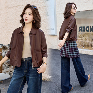 休闲风皮衣女2025秋新款洋气小众设计感宽松短款水洗皮夹克外套