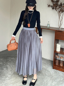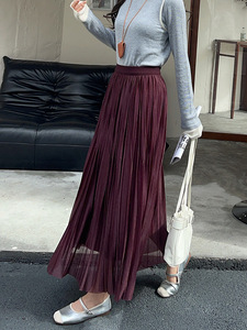 新品女装纱裙高腰仙气欧若风半裙简约高腰遮胯百褶显瘦半身裙5007