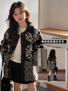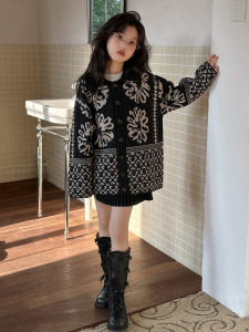 女童毛衣外套2025新款韩版气质提花针织开衫大童学生秋冬洋气上衣