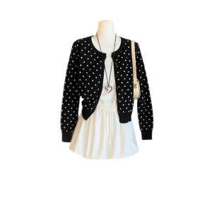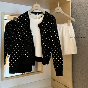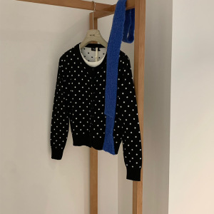 WGWE7175软软糯糯波点针织开衫撞色慵懒风高级感假两件毛衣
