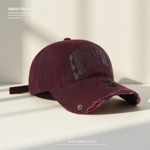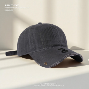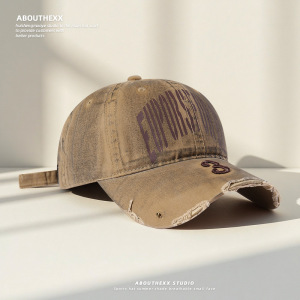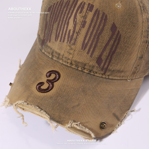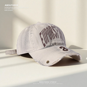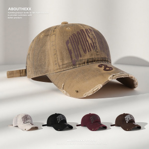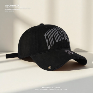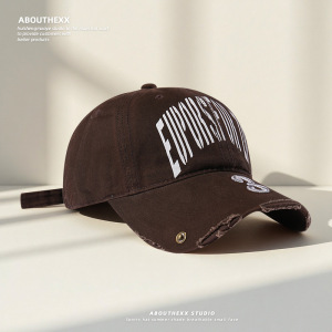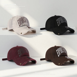 韩国复古破洞做旧字母鸭舌帽子女新款大头围宽帽檐显脸小棒球帽男