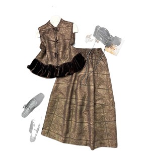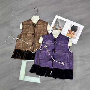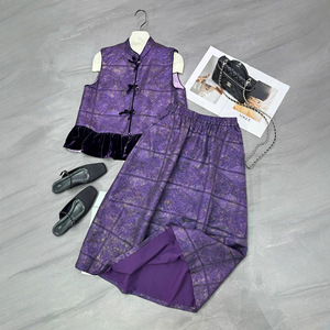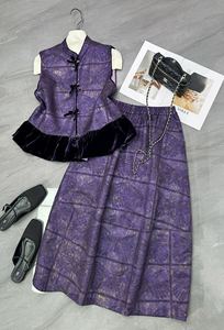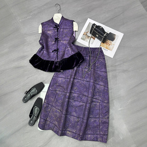 2025爆款套装时尚新中式人丝拼接真丝丝绒马甲➕松紧腰半裙两件套