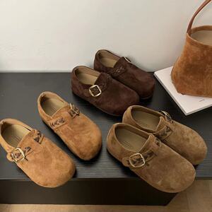复古编织刺绣全包博肯鞋女真皮2025年秋季新款一脚蹬厚底休闲单鞋