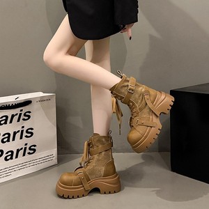 2025秋季新款马丁靴女超火复古牛仔皮带扣帅气短靴厚底耐磨时装靴