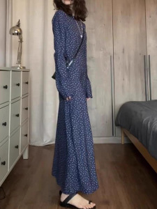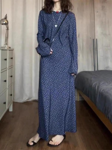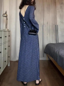 现货 冷淡系独特别致裙子女夏2025新款今年流行蓝色碎花连衣裙