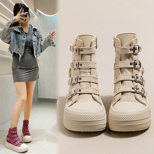 内增高6.5cm~小个子百搭高帮帆布鞋女春秋季透气高邦厚底鞋增高鞋