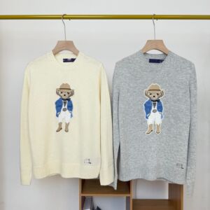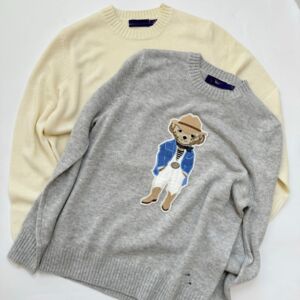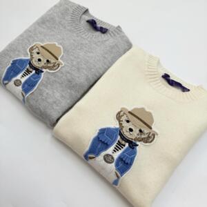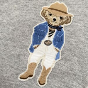 RL/高品质25年秋冬贴片小熊羊毛重工刺绣卡通圆领毛衣针织女