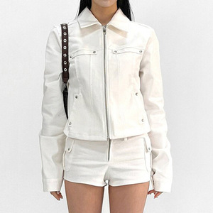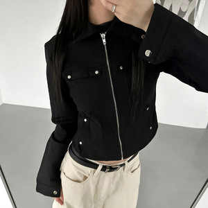 复古美式街头风女装立领夹克廓形蝴蝶结工装口袋上衣秋冬修身外套