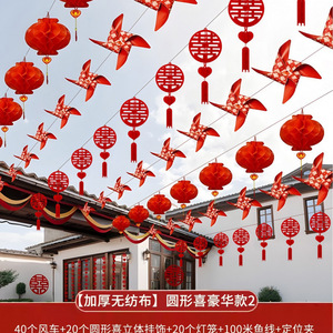 婚庆装饰彩旗灯笼婚礼婚房喜字拉花农村院子风车布置结婚用品大全