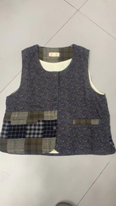 2025秋季新款女圆领日系马甲坎肩背心撞色文艺风ins外贸背心做旧