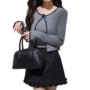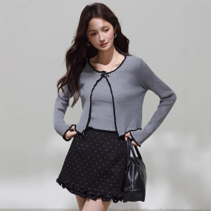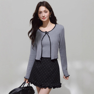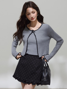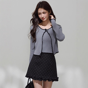 韩系撞色边针织开衫+个性灰色背心入秋新款叠穿长袖上衣常规