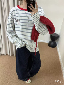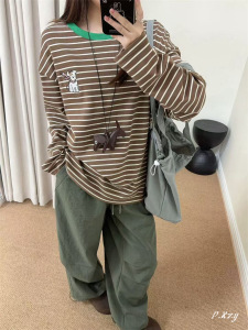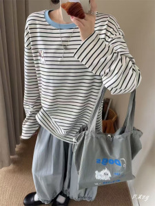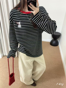 025秋季2025新款慵懒风松弛感宽松上衣早秋薄棉长袖打底衫女士T恤