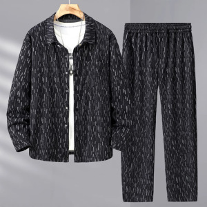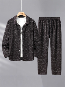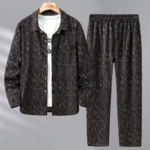 380斤大码休闲外套男宽松春秋季新款潮流衬衫套装显瘦长裤两件套