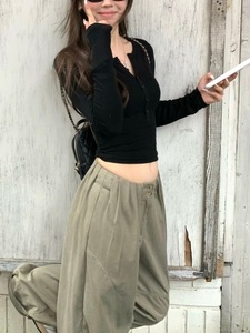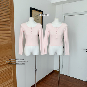 亨利领T恤女秋小个子粉色内搭修身长袖针织打底衫