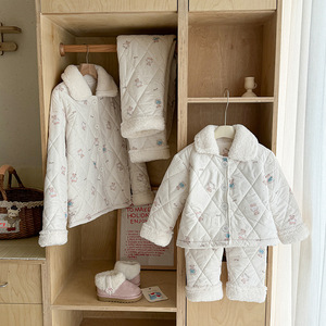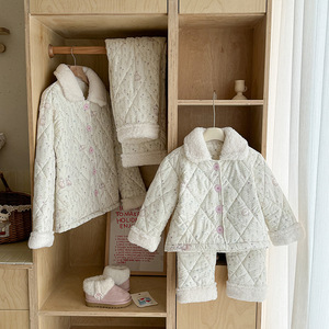 25新款秋冬儿童加绒棉服套装亲子装印夹棉加厚防寒保暖家居服睡衣