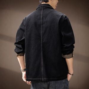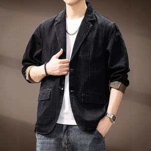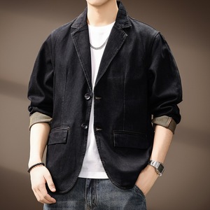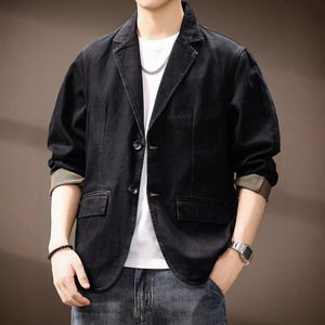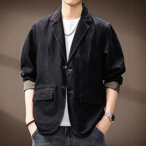 高端美式复古水洗牛仔休闲西服男士2025秋季新款宽松夹克男装外套