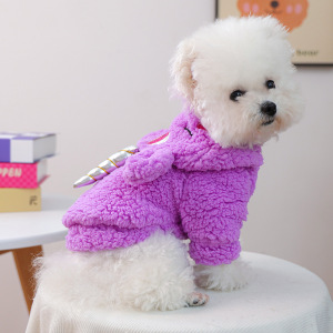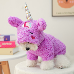 加绒加厚保暖宠物小狗猫咪衣服源头工厂直销秋冬新紫色小马变身装