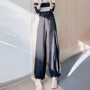 2025年秋高腰显瘦阔腿裤子花苞裤休闲百搭显瘦木耳花边灯笼裤802