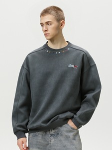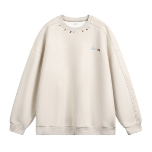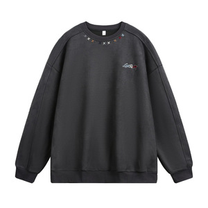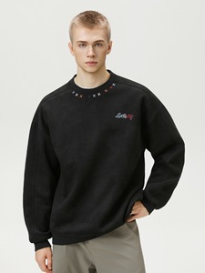 彩色刺绣仿鹿皮绒圆领卫衣男秋款立体分割结构美式复古套头衫外套