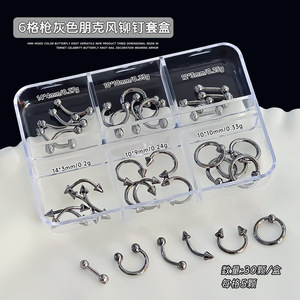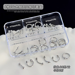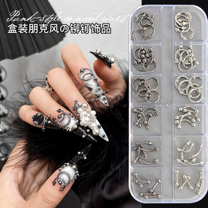 跨境爆款穿孔铆钉美甲饰品辣妹朋克风金属圆环钉子穿戴甲配饰批发