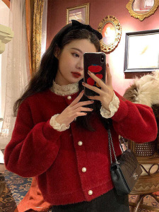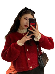 韩系秋冬季新款甜美小清新水貂绒毛衣女外套宽松百搭短款针织开衫