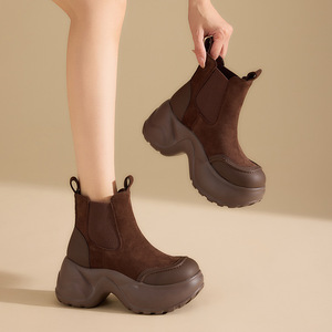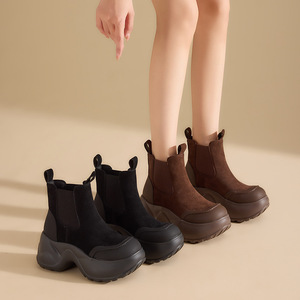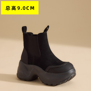 7780-30厚底烟筒靴女款2025秋冬新款百搭一脚蹬中筒靴子小个子