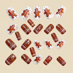 圣诞节中长款欧方形美甲贴片 棕色美甲贴片可拆卸24片盒装欧欧美