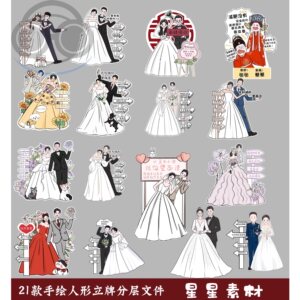 订婚宴婚礼迎宾牌kt板指引牌结婚人形立牌出阁宴指示手绘卡通绢花