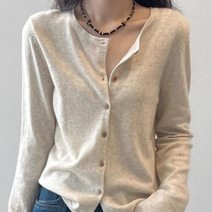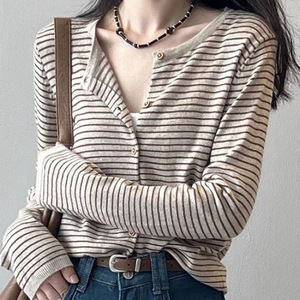 春秋新款条纹针织开衫外套女跨境小众上衣外搭薄款圆领长袖毛衣潮