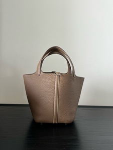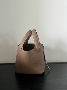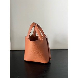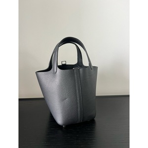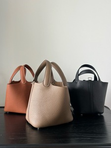 外贸新款头层牛皮菜篮子水桶包女高级感大容量手拎包