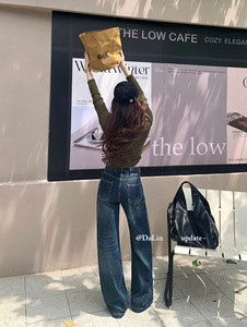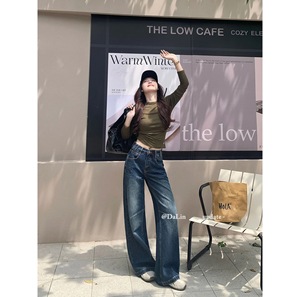 DUOXINIU/多喜牛/DaLin秋季新款牛仔裤女窄版阔腿裤宽松显腿长