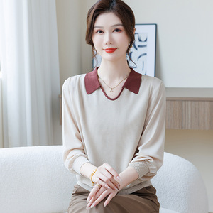 妈妈春秋洋气打底小衫中年女装秋装新款上衣服中老年休闲长袖T恤