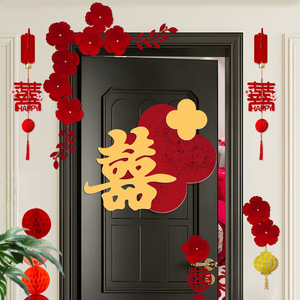 房门布置装饰喜字门贴结婚房门喜字贴男女方卧室门上氛围全套装饰